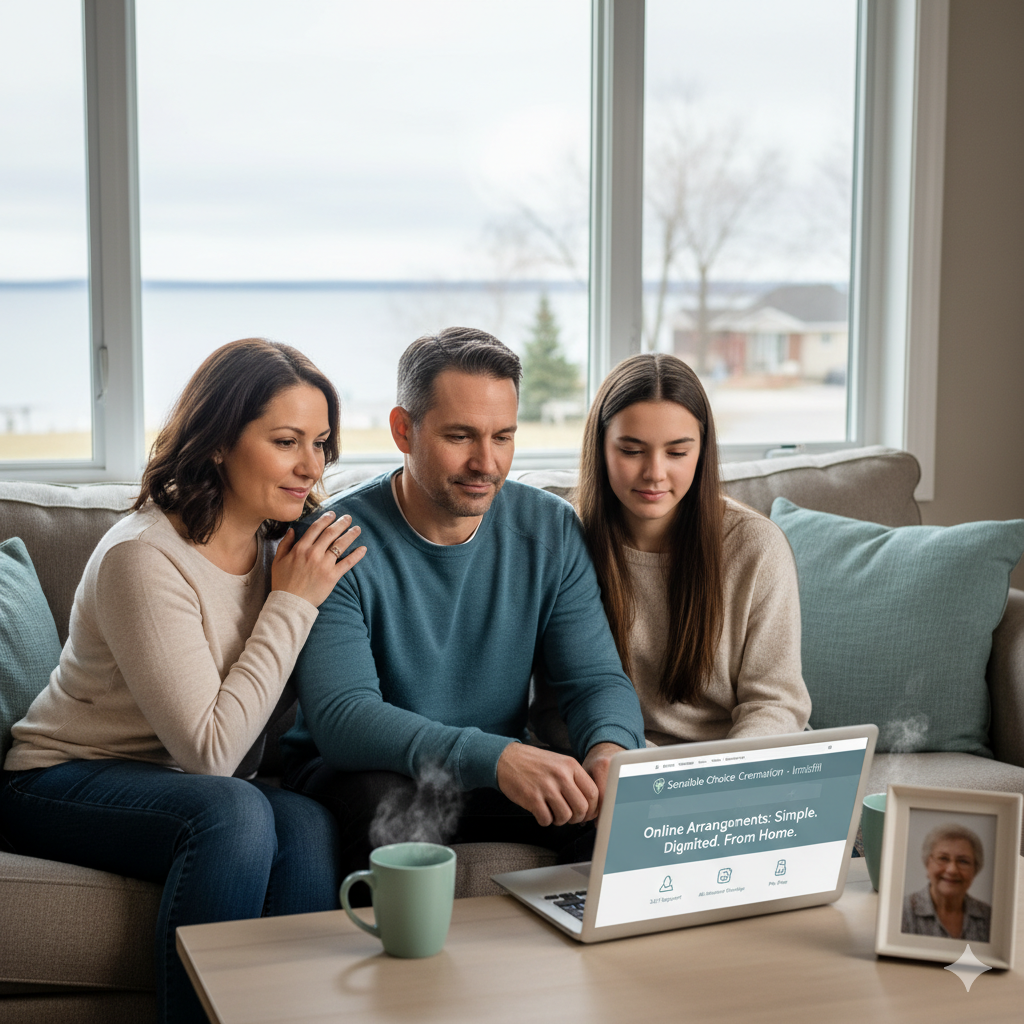 Direct cremation is a straightforward and dignified option that allows families to say goodbye without the complexities and high costs of a traditional funeral service. It is a process that involves the immediate cremation of the deceased, without any prior embalming, viewing, or formal ceremony with the body present. Our Sensible Choice Online Cremation Package is an all-inclusive, one-price solution designed to make this process as simple as possible. It includes all necessary services, fees, and taxes, providing complete financial transparency from the very beginning. This approach allows families to choose a personal, meaningful memorial service at a later date, in their own time, and on their own terms, giving them space to grieve and celebrate their loved one's life in a way that feels right for them.